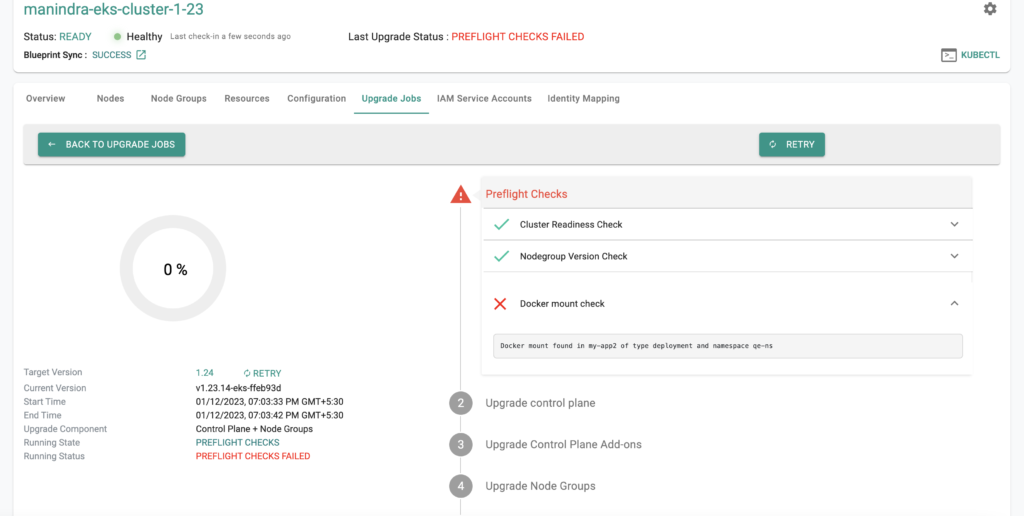 Controller->>EKS Cluster: Pre-Flight Check Failure