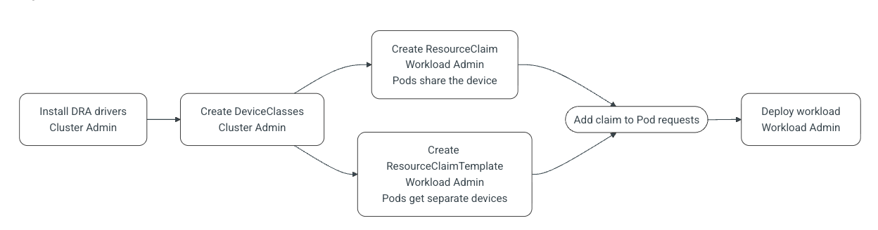 Once requested, Kubernetes handles Pod scheduling, node placement, and device assignment automatically. This eliminates the manual coordination between admins and app operators that exists today.