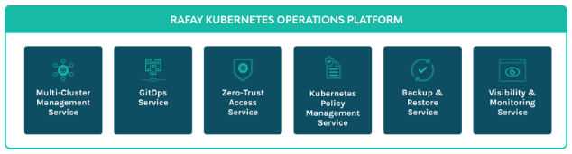 The Rafay Kubernetes Operations Platform provides organizations with six core services to streamline both EKS and EKS Anywhere operations: