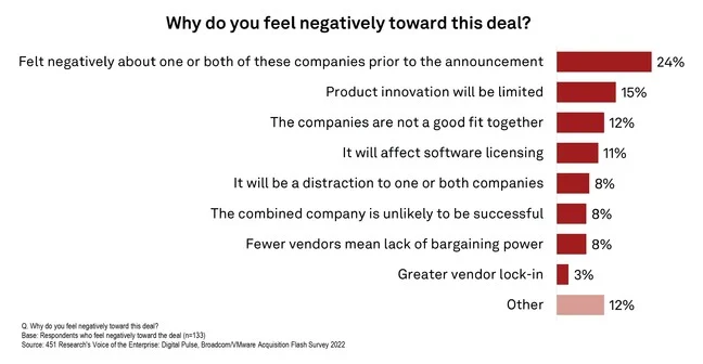 According to 451 Research’s Voice of the Enterprise: Digital Pulse, Broadcom/VMware Acquisition Flash Survey 2022 listed the following concerns by respondents.